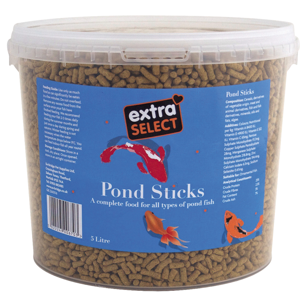 Extra Select Pond Sticks are a complete, high-quality food suitable for all types of freshwater pond fish. Naturally coloured and packed with essential nutrients, these sticks provide a balanced diet to support growth, vitality, and overall health.