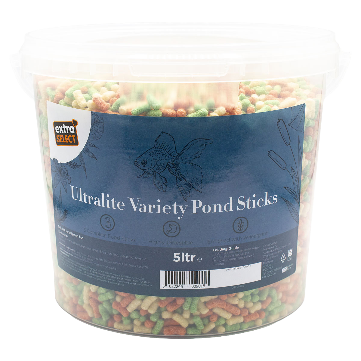 Extra Select Ultralite Variety Pond Sticks are a lightweight blend of three complete food sticks: Natural Pond Sticks, Paprika Pond Sticks, and Spirulina Pond Sticks. Enriched with wheatgerm and highly digestible, this variety provides a balanced diet packed with essential nutrients to support the health, vitality, and wellbeing of all pond fish, including koi, orfe, and goldfish.