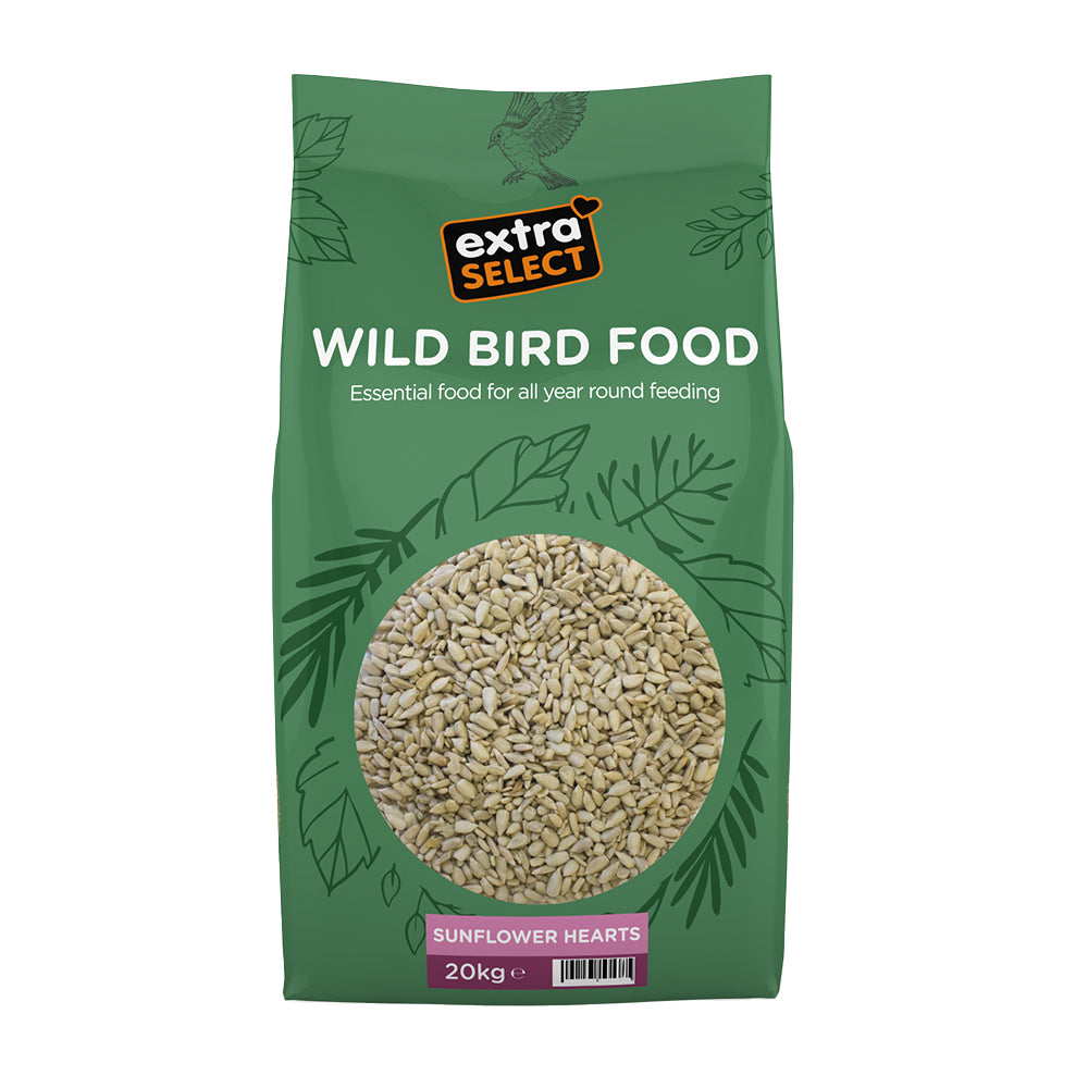 Extra Select Sunflower Hearts are also put through a sortex machine which uses lasers to colour detect any black husk still remaining, producing a uniform and totally husk free sample. Complementary food for wild birds may contain nuts.