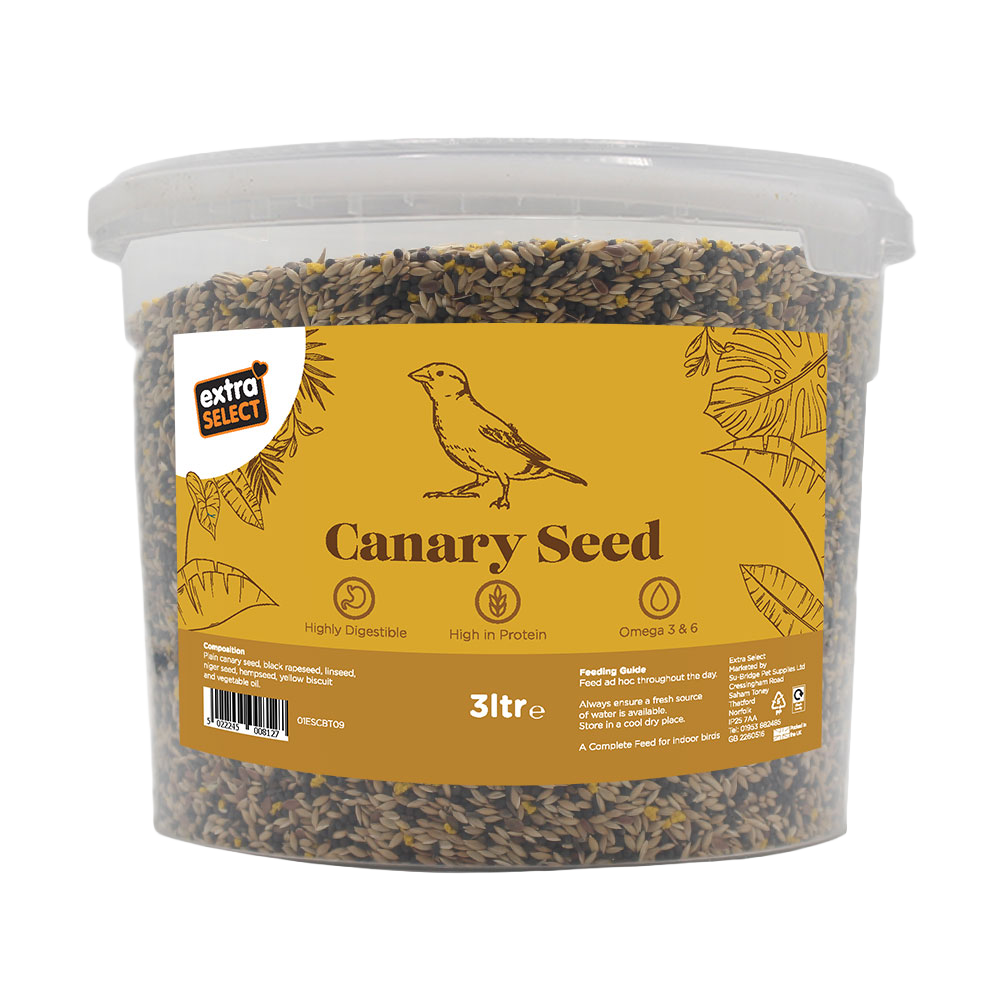 Extra Select Mixed Canary Seed Bucket is a complete and nutritious feed for indoor birds, ideal for canaries and other small caged birds. Rich in protein and healthy oils, it supports energy, vitality, and overall wellbeing. Highly digestible and packed with omega 3 and 6, it’s perfect for daily feeding from a hanging seed feeder.